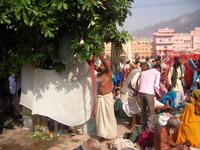 いや、待てよ。確かレクチャーで私をからかったインド人2人組(30代と50代♂)が今夜デリーに向かうって言ってたな。よし、彼らに便乗できるか聞いてみよう!我ながら素晴らしいアイデア!!ユキにパッキングしておく様に伝え、夕食前に彼らを捕まえた。そしてジャビール(30代の方)に ユキを同じ便に乗せてってもらってもいいか尋ねる。彼は、今ね クンブメーラのせいで 道が混んでて大変なんだ、バス停まで行ってくれるタクシーがないんだよ、いま それで知り合いに車を頼んでいるんだけど 遅れてるんだ、もしかしたら明日になっちゃうかもしれないけど、それでもいい?という。もちろん!面倒を見てくれなくてもいい、ただ独りで行かせるのは心配なのでお願いしたいんだ。多分彼女はデリーに着いたら 大きな病院に行くから、デリーまで何とか同行者がいると安心なの、と言うと 分かった、任せておいて、大丈夫!!僕らが責任持って連れて行くよ、なんなら病院まで送っていくから心配しないで~と言ってくれた。この時、私の感謝は爆発した。よ~かったぁ~~!!これで心おきなくニケタンを去れる~。